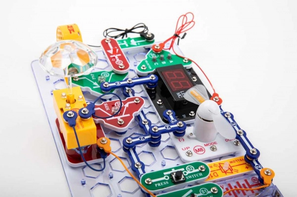 - 1× βάση, 35× εξαρτήματα (π.χ. αεροπλάνο, μινιατούρα αυτοκινήτου, ηχείο, ανιχνευτής κίνησης, κινητήρας με κιβώτιο μετάδοσης), 1× εγχειρίδιο (για λήψη online)