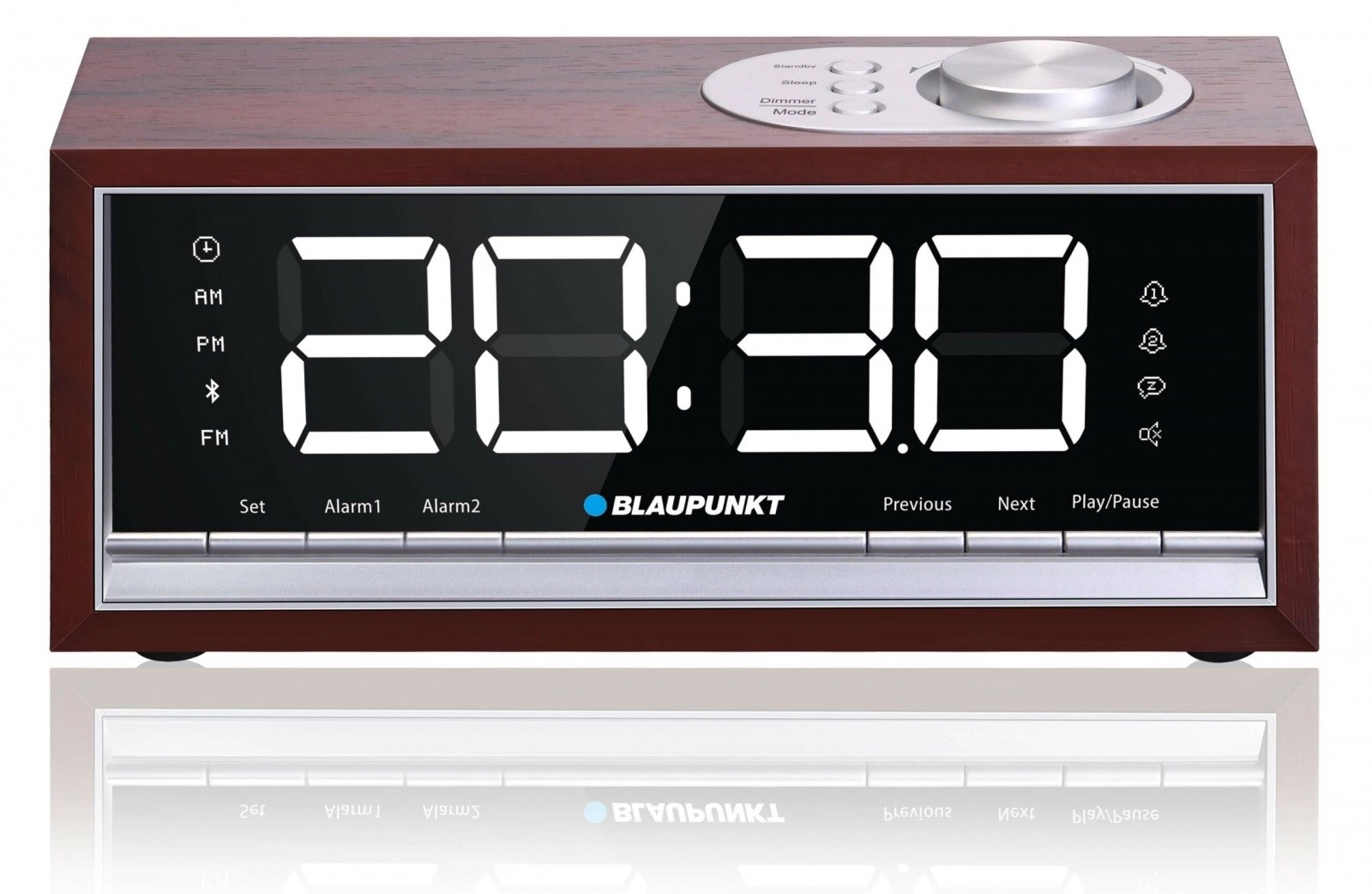 Στυλάτο ραδιοξυπνητήρι σε ξύλινο ντεκόρ, ένας πρακτικός σύμμαχος για κρεβατοκάμαρα και γραφείο. Χάρη στο Bluetooth αναπαράγει ασύρματα μουσική από το τηλέφωνο ή το tablet, ενώ ο FM PLL δέκτης με μνήμη έως 60 σταθμών επιτρέπει γρήγορη επιλογή αγαπημένων ραδιοφώνων. Το ενσωματωμένο bass reflex ενισχύει τα μπάσα και τη συνολική ποιότητα ήχου.