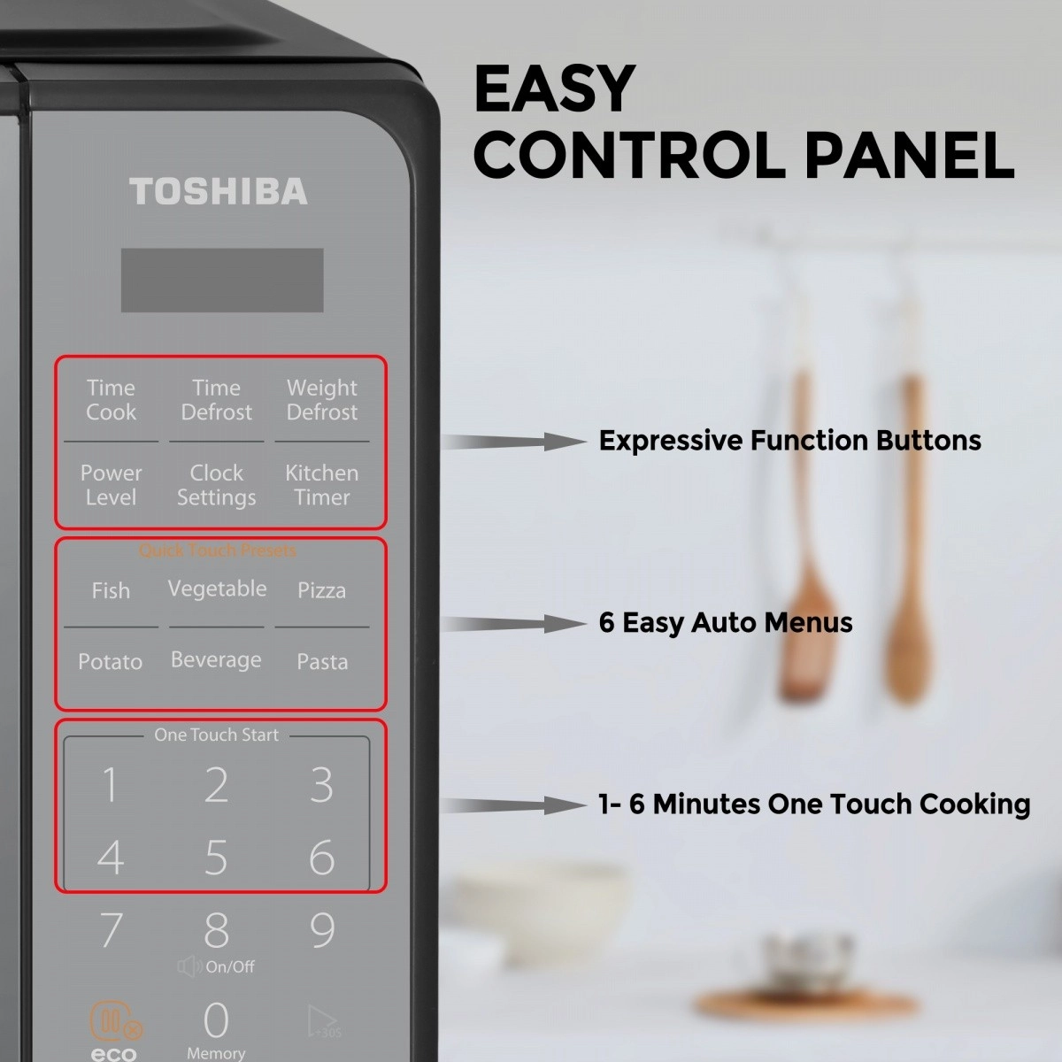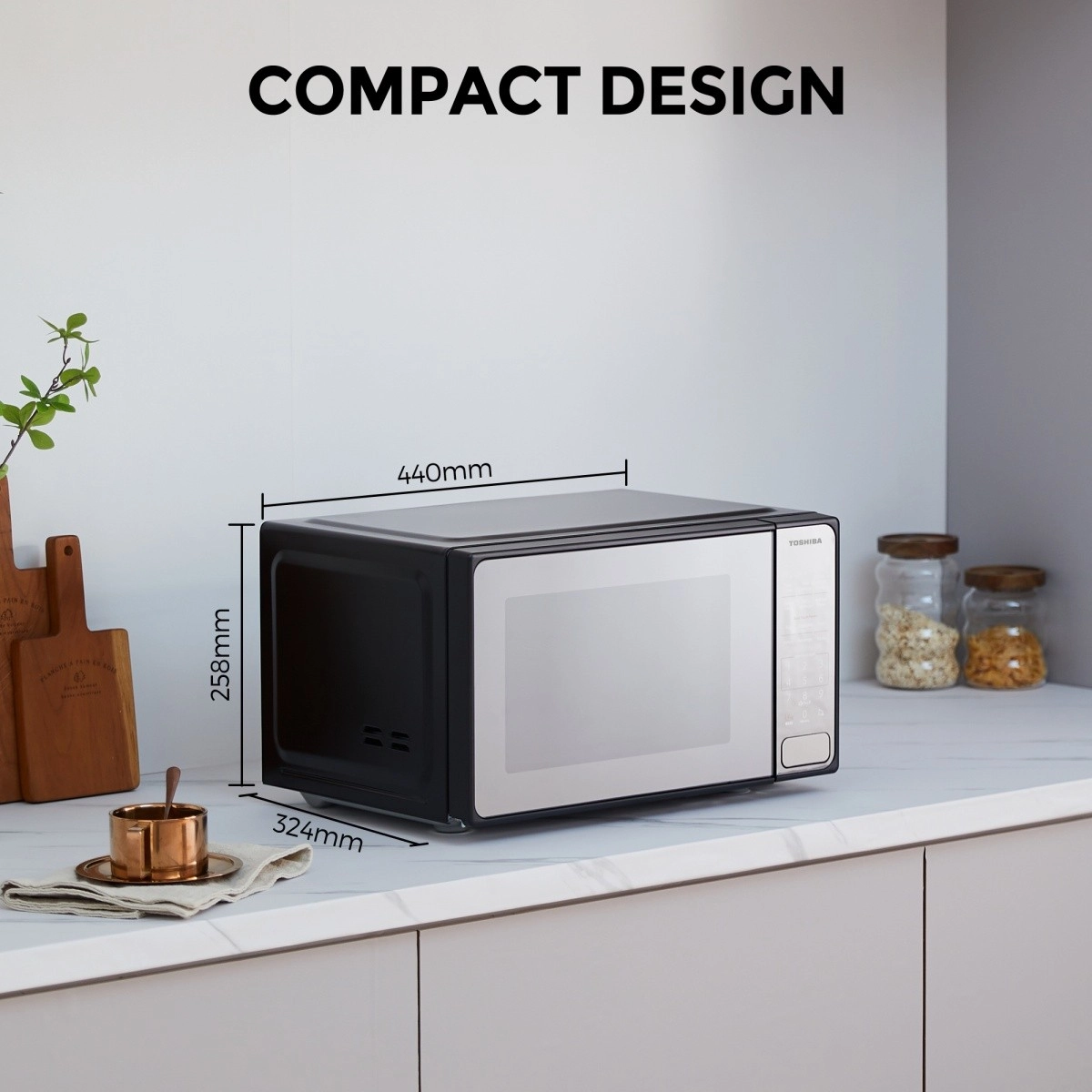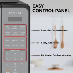Ανακαλύψτε εύκολο καθημερινό μαγείρεμα με τον φούρνο μικροκυμάτων Toshiba, που χάρη στις compact διαστάσεις του ταιριάζει στις περισσότερες κουζίνες. Ο μοντέρνος mirror σχεδιασμός αναβαθμίζει το στυλ του χώρου και το ευανάγνωστο πάνελ αφής προσφέρει γρήγορη πρόσβαση στις πιο δημοφιλείς λειτουργίες.