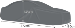 Χάρη στα ελαστικά τελειώματα μπροστά και πίσω, η κουκούλα προσαρμόζεται εύκολα στο σχήμα του οχήματος και παραμένει σταθερή ακόμη και σε παρατεταμένο παρκάρισμα. Οι πλαϊνοί ισχυροί ιμάντες επιτρέπουν γρήγορο δέσιμο στις ζάντες των τροχών για ακόμη καλύτερη στερέωση.