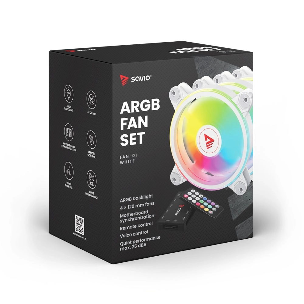 Σετ τεσσάρων ανεμιστήρων από τη μάρκα Savio που προσφέρει ισχυρή ψύξη και εντυπωσιακό φωτισμό ARGB για τον υπολογιστή σας. Στο πακέτο περιλαμβάνονται ελεγκτής και τηλεχειριστήριο, που επιτρέπουν εύκολη προσαρμογή των φωτεινών εφέ και της ταχύτητας των ανεμιστήρων.