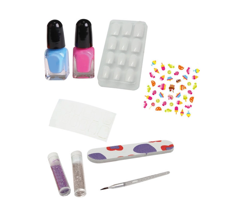 Γίνε μανικιουρίστ με αυτό το μοναδικό σετ νυχιών και δημιούργησε πρωτότυπα λαμπερά νύχια με θέμα τα γλυκίσματα. Τέλεια διασκέδαση για όλες τις μικρές δημιουργικές ψυχές που αγαπούν το στυλ και τα χρώματα.