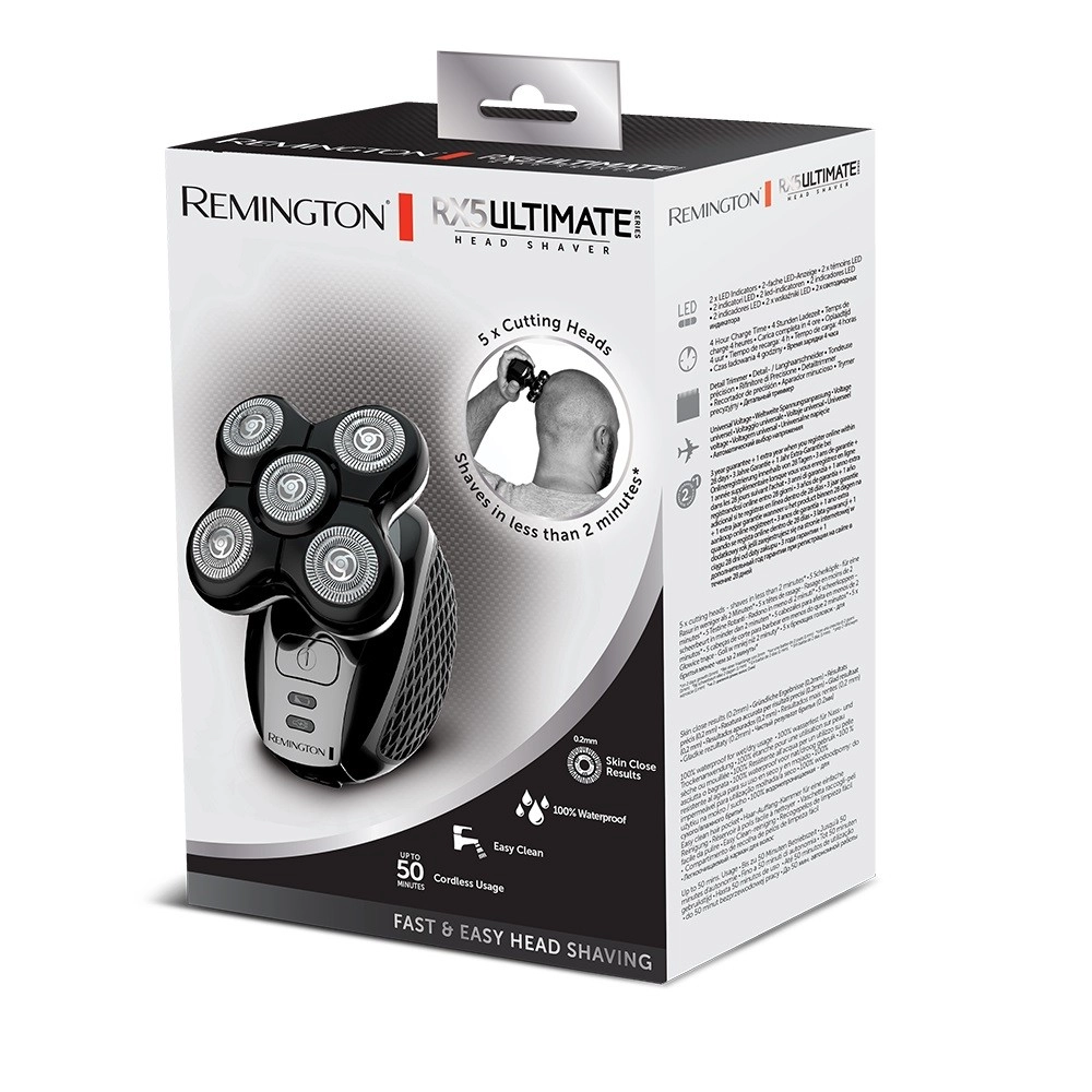 Η Remington XR1500 RX5 Ultimate Series έχει σχεδιαστεί για άνδρες που εκτιμούν την τέλεια λείανση του ξυρίσματος που επιτυγχάνεται με πέντε ευέλικτες κεφαλές. Η συσκευή είναι εύχρηστη χάρη στον εργονομικό σχεδιασμό της, που εξασφαλίζει άνετο κράτημα στο χέρι. Είναι 100% αδιάβροχη, επιτρέποντας χρήση τόσο σε στεγνό όσο και σε υγρό ξύρισμα με τζελ ή αφρό. Η ενσωματωμένη μπαταρία προσφέρει έως και 50 λεπτά ασύρματης λειτουργίας μετά από πλήρη φόρτιση, που διαρκεί περίπου 4 ώρες. Ο καθαρισμός της ξυριστικής μηχανής είναι απλός χάρη στη δυνατότητα ξεπλύματος κάτω από τρεχούμενο νερό.