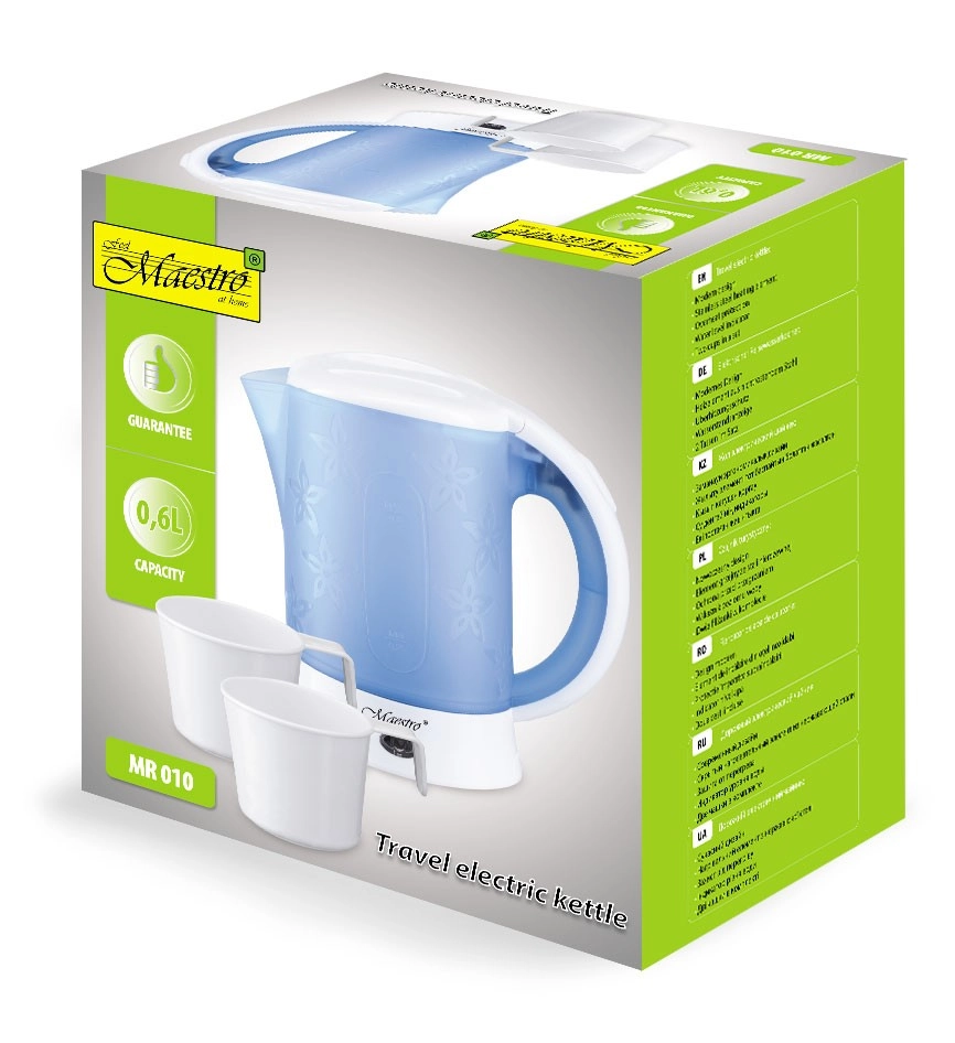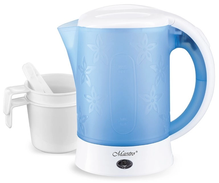 Κατασκευασμένος από ανθεκτικό πλαστικό, ο βραστήρας είναι ελαφρύς και εύκολος στη μεταφορά. Στη συσκευασία περιλαμβάνονται δύο φλιτζάνια χωρητικότητας 150 ml και δύο κουταλάκια, γεγονός που τον καθιστά ιδανική επιλογή για γρήγορο πρωινό ή τσάι εν κινήσει.