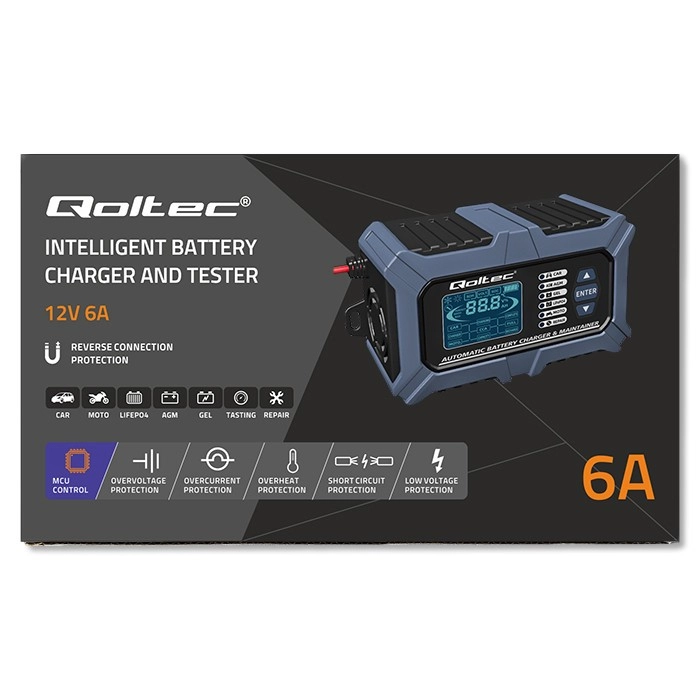 Αναζητάτε έναν καθολικό και ασφαλή τρόπο να διατηρείτε την μπαταρία σε άριστη κατάσταση; Ο έξυπνος φορτιστής QOLTEC ισχύος 6 A συνδυάζει ακριβή μικροεπεξεργαστικό έλεγχο, ευκρινή οθόνη LCD και κορυφαίες προστασίες. Υποστηρίζει πολλούς τύπους μπαταριών, συμπεριλαμβανομένων AGM, GEL και LiFePO4, ώστε με μία συσκευή να φορτίζετε αυτοκίνητο, μοτοσικλέτα, σκάφος και κηποτεχνικό εξοπλισμό.