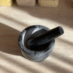 Το μάρμαρο δεν απορροφά υγρασία ούτε οσμές, οπότε οι γεύσεις δεν αναμειγνύονται και το αποτέλεσμα είναι πάντα καθαρό και έντονο. Το γουδί είναι ιδανικό για κοπάνισμα μπαχαρικών και βοτάνων, παρασκευή παστών, πέστο, κονιορτοποίηση ξηρών καρπών, ζάχαρης ή σπόρων. Στη συσκευασία περιλαμβάνονται επίσης προστατευτικό έγχρωμο κουτί και κουτί μεταφοράς για ασφαλή μεταφορά και αποθήκευση.
