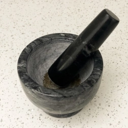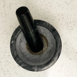 Η ελαφρώς τραχιά εσωτερική επιφάνεια του μπολ και του γουδοχέρη αυξάνει την τριβή και επιταχύνει την κονιορτοποίηση πιπεριού, κύμινου, σκόρδου και βοτάνων σε πάστα με μέγιστη απελευθέρωση αρώματος.