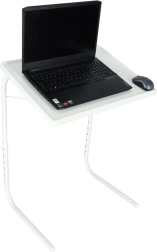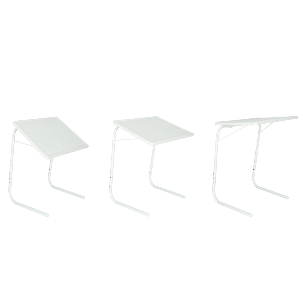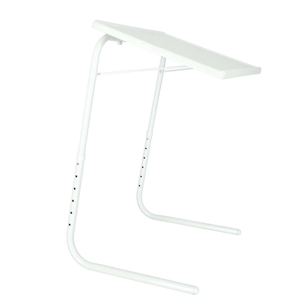 Απολαύστε άνετη εργασία και ψυχαγωγία στον καναπέ, στην πολυθρόνα ή δίπλα στο κρεβάτι. Το πολυχρηστικό λευκό τραπεζάκι για laptop συνδυάζει σταθερή μεταλλική κατασκευή με πρακτική πλαστική επιφάνεια και χάρη στη ρύθμιση ύψους και κλίσης προσαρμόζεται εύκολα στη θέση σας. Η υπερυψωμένη λωρίδα στο κάτω άκρο της επιφάνειας προστατεύει το laptop από ολίσθηση ακόμη και σε μεγαλύτερη κλίση.