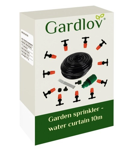 Το υδάτινο πέπλο δημιουργεί λεπτή ομίχλη που απορροφά τη θερμότητα από το περιβάλλον και προσφέρει ευχάριστη δροσιά τις ζεστές ημέρες. Χάρη στα 11 ποιοτικά ακροφύσια διαμέτρου 6 mm, η κάλυψη είναι ομοιόμορφη και φιλική προς τα φυτά και τους ανθρώπους. Η εγκατάσταση είναι γρήγορη – απλώς συνδέστε σε τυπική παροχή νερού 1/2" και στερεώστε τον σωλήνα με τους παρεχόμενους δεματικούς ιμάντες.