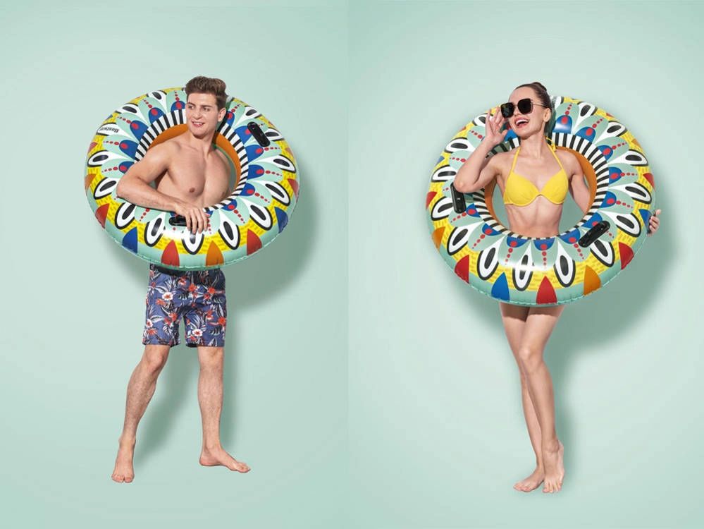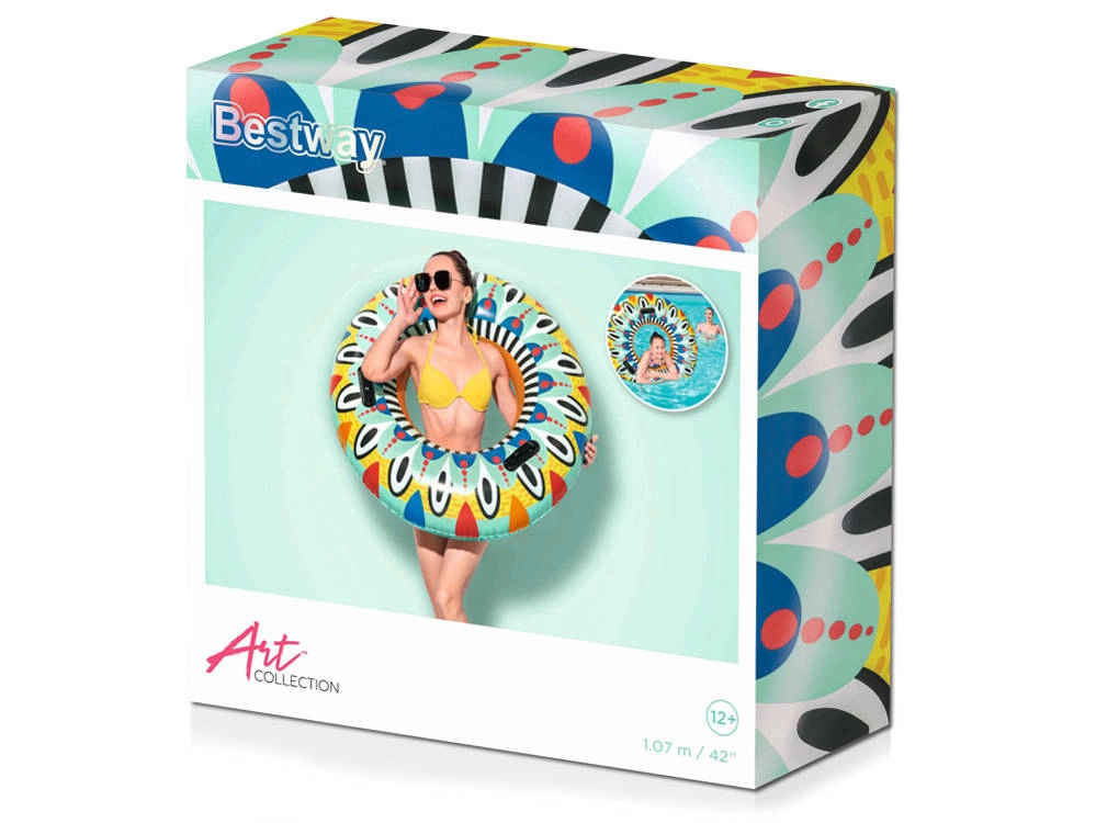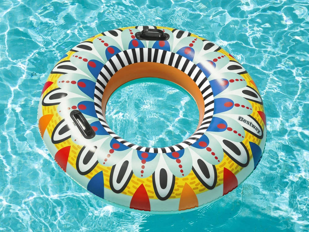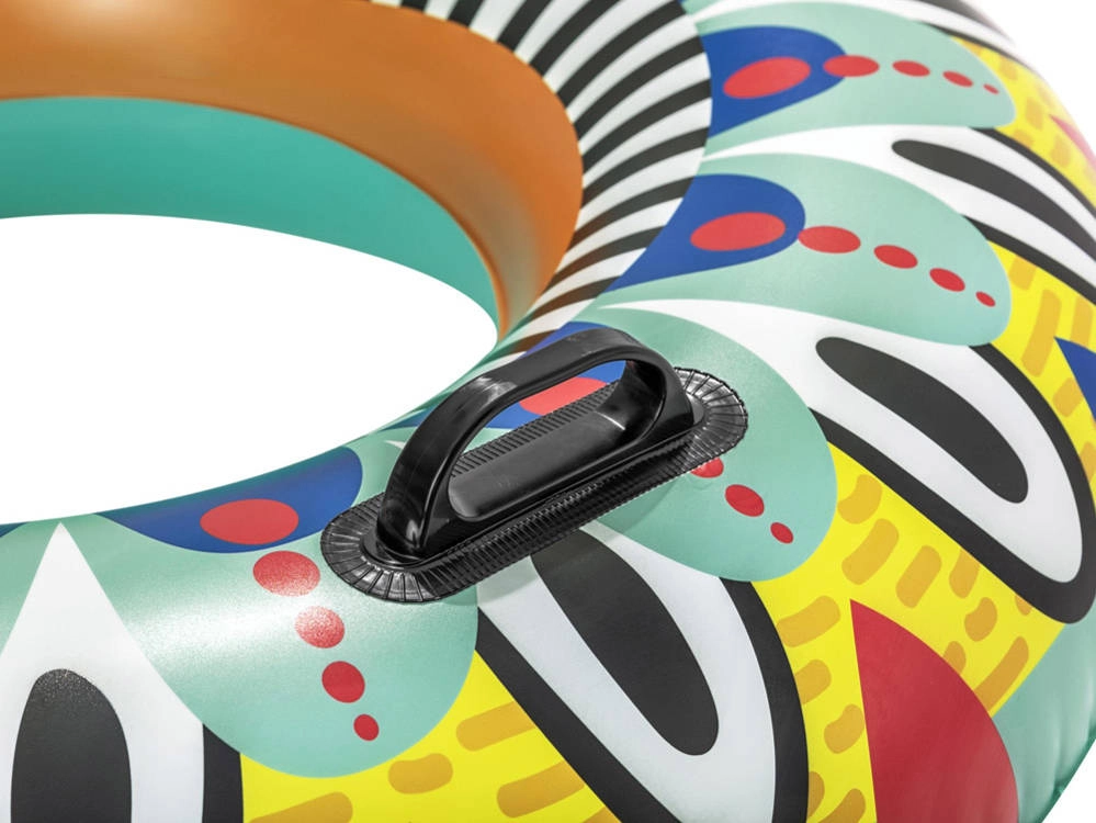 Το σωσίβιο κολύμβησης Fiesta φέρνει ξανά στυλ και χαρά στην πισίνα με τη ζωντανή γραφιστική του και τα έντονα χρώματα. Με διάμετρο 107 cm και δύο μαύρες χειρολαβές για εύκολο κράτημα, εξασφαλίζει ασφάλεια για παιδιά από 12 ετών και άνω καθώς και για ενήλικες. Η ενσωματωμένη βαλβίδα ασφαλείας επιτρέπει εύκολο φούσκωμα και άδειασμα, ώστε η αποθήκευση να είναι παιχνιδάκι.
