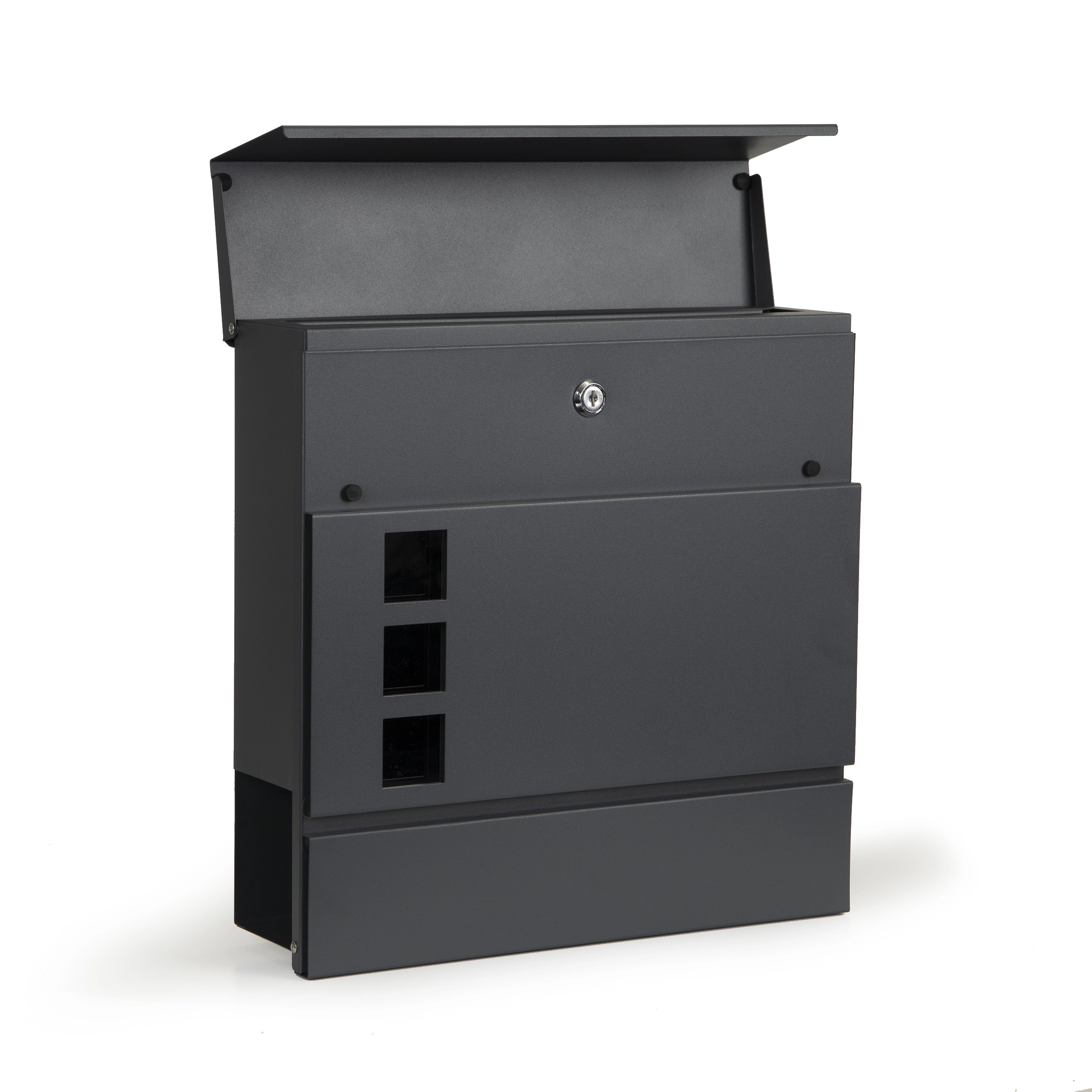 Αυτό το κομψό και λειτουργικό γραμματοκιβώτιο της ModernHome είναι κατασκευασμένο από γαλβανισμένο ατσάλι, προσφέροντας αντοχή στη διάβρωση. Μπορεί να τοποθετηθεί εύκολα σε προσόψεις ή φράχτες και διαθέτει ειδικό χώρο για εφημερίδες που διαχωρίζει την αλληλογραφία σας από διαφημιστικό υλικό.