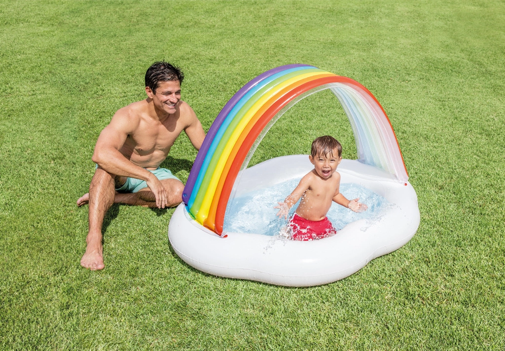 Απολαύστε το καλοκαίρι στο έπακρο με αυτήν την παιδική φουσκωτή πισίνα Ουράνιο Τόξο, που προσφέρει ευχάριστη δροσιά κατευθείαν στο σπίτι σας. Η τέντα πάνω από την πισίνα εξασφαλίζει σκιά και άνεση κατά τη διάρκεια των ζεστών καλοκαιρινών ημερών.