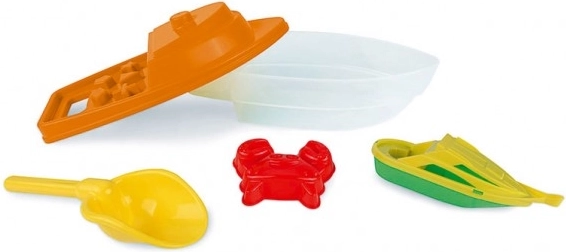 Αυτό το πολύχρωμο πλαστικό καραβάκι είναι απαραίτητο αξεσουάρ για κάθε παιδί που του αρέσει να παίζει στην παραλία. Το σετ περιλαμβάνει επίσης διάφορα καλούπια και δοχεία, που επιτρέπουν δημιουργίες στην άμμο και στο νερό.