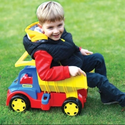Παιδικό Φορτηγό Ντάμπερ Gigant 55 cm είναι ένα μεγάλο φορτηγό μήκους 55 cm που τα παιδιά θα λατρέψουν, χάρη στη δυνατότητα να φορτώνουν, να αδειάζουν και να μεταφέρουν τα αγαπημένα τους παιχνίδια. Διαθέτει μπροστινή και πίσω υποδοχή για σύνδεση ρυμουλκούμενου ή σχοινιού ρυμούλκησης. Η ανατρεπόμενη καρότσα με άνετη λαβή επιτρέπει εύκολο χειρισμό και ατελείωτο παιχνίδι. Με αντοχή έως 150 kg, το ντάμπερ είναι ιδανικό και ως όχημα ώθησης – οι μικρότεροι μπορούν να κάθονται πάνω στο παιχνίδι και να σπρώχνουν με τα πόδια. Η στιβαρή κατασκευή εξασφαλίζει ανθεκτικότητα, καθιστώντας το ιδανικό για παιχνίδι έξω και μέσα στο σπίτι.
