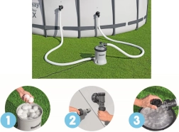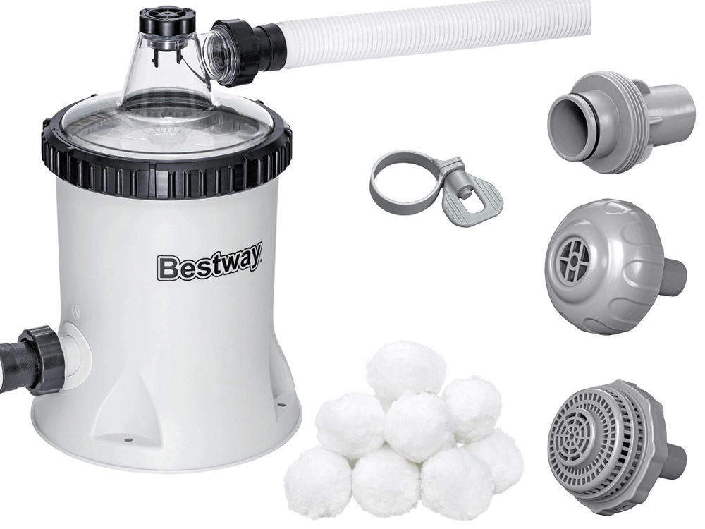 Απολαύστε καθαρό νερό χωρίς κόπο. Η αντλία φίλτρανσης BESTWAY Polysphere προσφέρει εξαιρετική απόδοση σε σύγκριση με τα κλασικά χάρτινα φυσίγγια: τα ελαφριά και πλενόμενα σφαιρίδια Polysphere παγιδεύουν ρύπους σε πολλαπλά στρώματα και επιμηκύνουν τα διαστήματα μεταξύ των συντηρήσεων. Το διάφανο καπάκι διευκολύνει τον έλεγχο λειτουργίας και η σύνδεση είναι γρήγορη χάρη στους παρεχόμενους αντάπτορες.