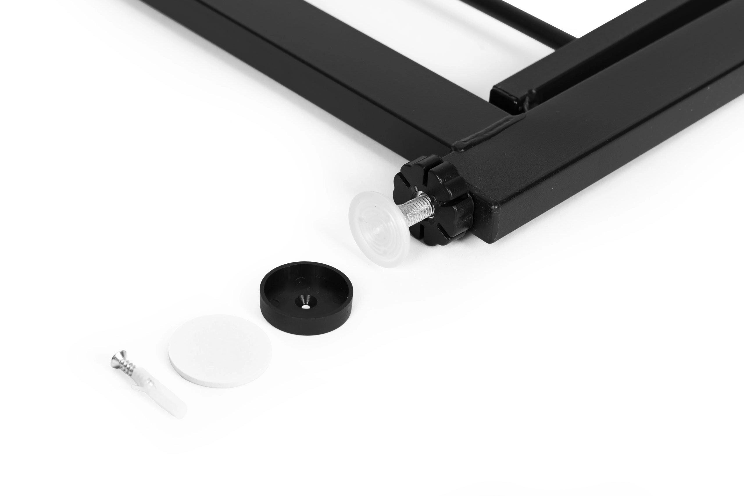Η εγκατάσταση γίνεται χωρίς εργαλεία και χωρίς τρύπημα χάρη στη στήριξη πίεσης 4 σημείων. Στη συσκευασία περιλαμβάνονται προστατευτικά παρεμβύσματα που προφυλάσσουν τις επιφάνειες, καθώς και αξεσουάρ για σταθερή βίδωση αν προτιμάτε μόνιμη εγκατάσταση. Το ανθεκτικό ατσάλι με ηλεκτροστατική βαφή πούδρας εξασφαλίζει μεγάλη διάρκεια ζωής και σταθερότητα.