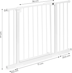 Προσαρμόστε το πλάτος του κάγκελου με τους συμπεριλαμβανόμενους επεκτατικούς πίνακες και δημιουργήστε την ιδανική λύση για διάφορες διαστάσεις πορτών και κλιμάκων. Το κάγκελο είναι επίσης ιδανικό για τον έλεγχο χώρων από τους τετράποδους φίλους σας.