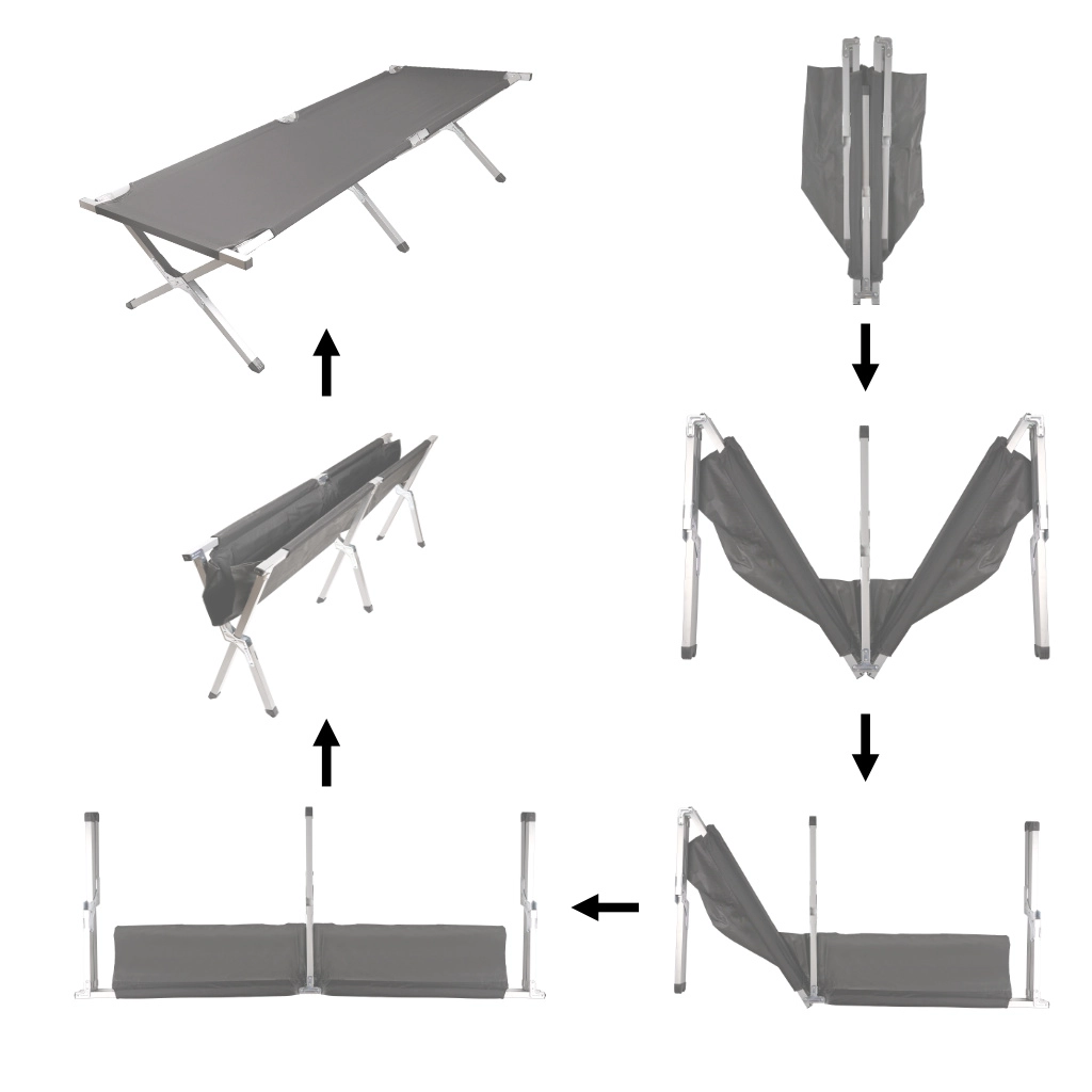 Έχει σχεδιαστεί για γρήγορη και διαισθητική χρήση – ανοίγει σε στιγμή, τα αντιολισθητικά ποδαρικά προσφέρουν σιγουριά σε διάφορες επιφάνειες και η ασφάλεια κατά της ακούσιας αναδίπλωσης προσθέτει προστασία. Η υψηλή ικανότητα φόρτωσης 150 kg και το άνετο ύψος ύπνου παρέχουν άνεση σε παιδιά και ενήλικες.