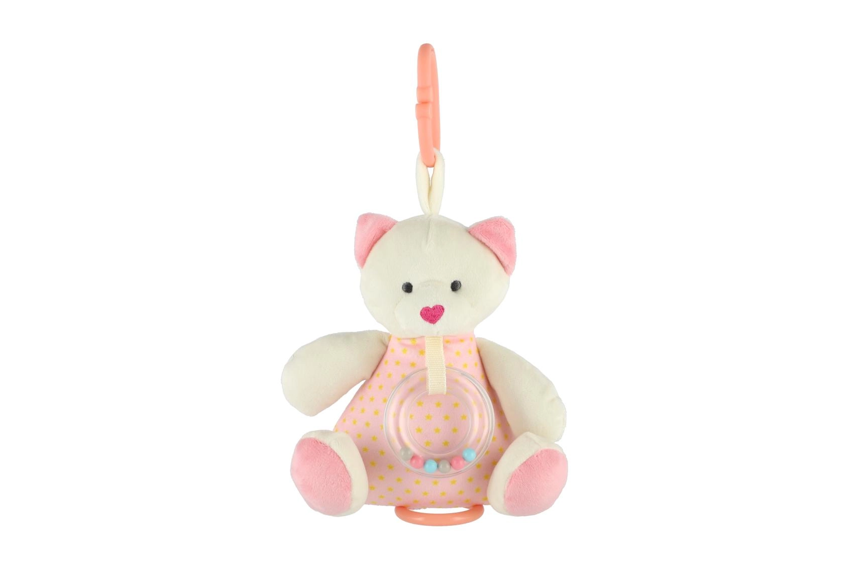 Χαριτωμένο λούτρινο αρκουδάκι με μουσική μεγέθους 18 cm σε απαλό ροζ χρώμα προσφέρει καταπραϋντικό ήχο, υπέροχα μαλακά υλικά και ασφαλή κατασκευή χωρίς κοφτερές άκρες. Ιδανικός σύντροφος για κούνια και καρότσι, που βοηθά τα παιδιά να κοιμούνται πιο εύκολα και να αναπτύσσουν την αντίληψη χάρη στις απαλές υφές και το διακριτικό κουδουνάκι.