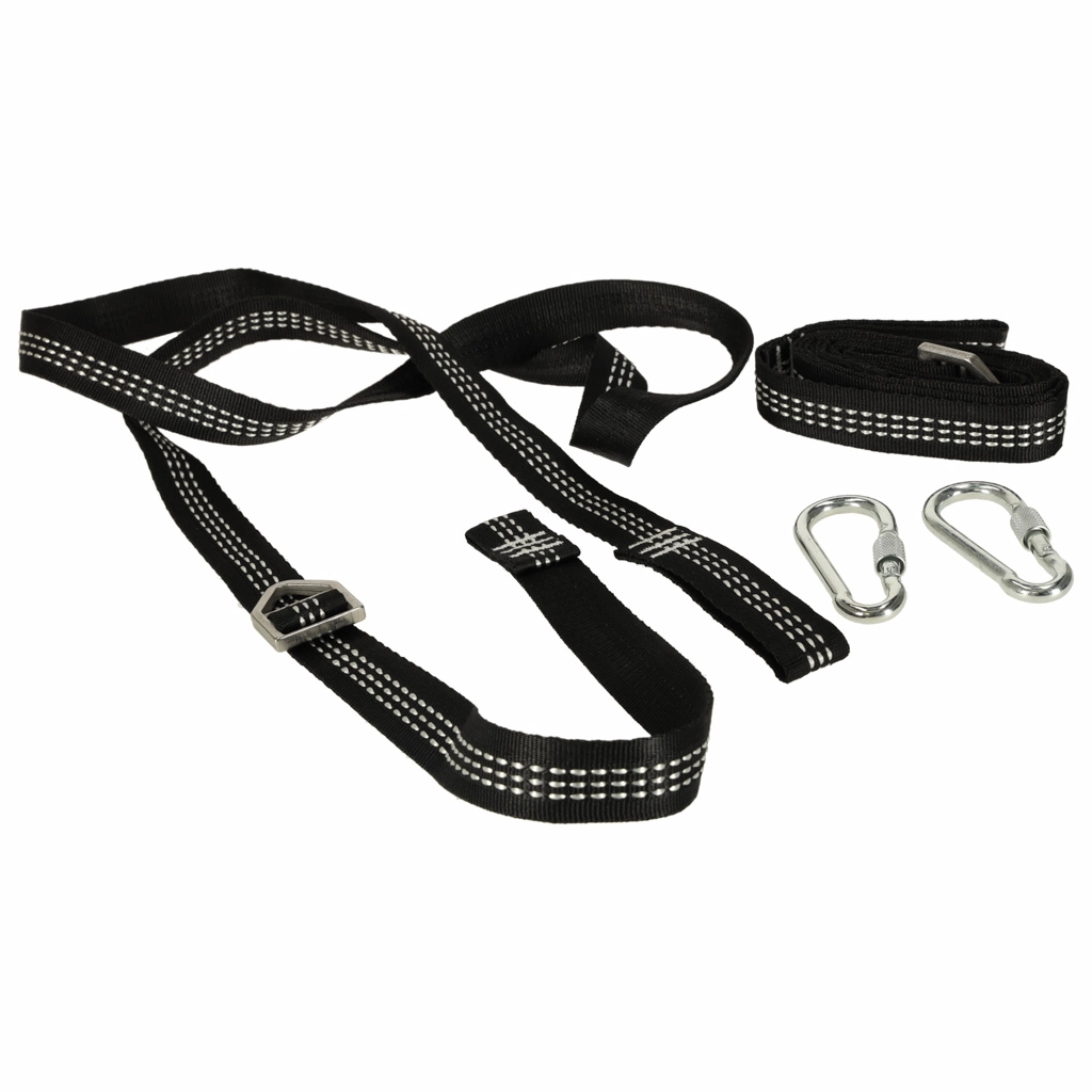 Ιδανικό σετ εγκατάστασης για όλους τους λάτρεις της κίνησης, είτε για χρήση στον κήπο, στη βεράντα είτε σε εσωτερικό χώρο. Το σετ περιλαμβάνει δύο ιδιαίτερα ανθεκτικούς ιμάντες μήκους 2 μέτρων και δύο καραμπίνερ με μέγιστη αντοχή 300 kg. Έτσι εξασφαλίζεται σταθερότητα και ασφάλεια ακόμη και σε εντατική χρήση.