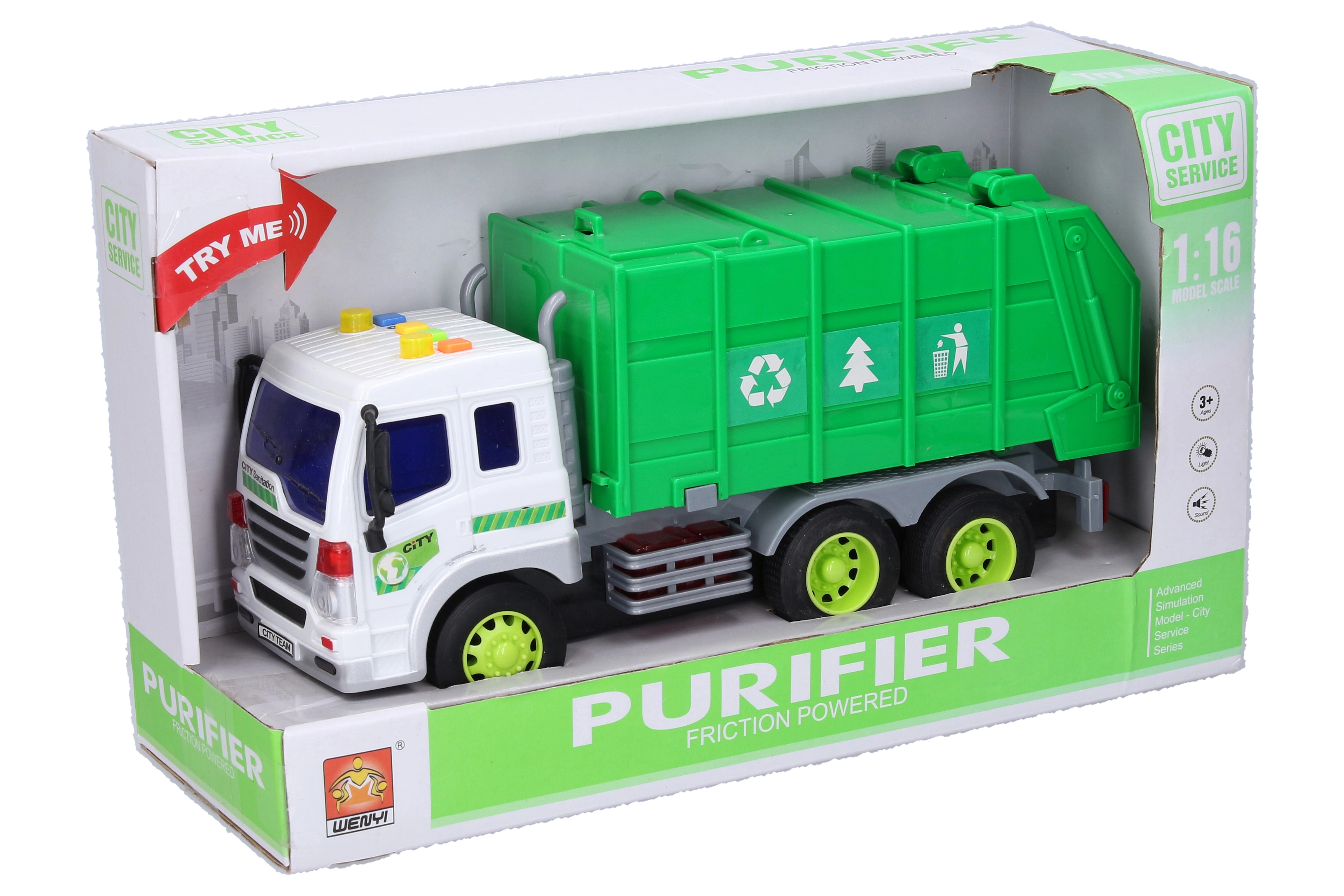 Σας παρουσιάζουμε ένα παιχνίδι που θα ενθουσιάσει κάθε μικρό οδηγό - απορριμματοφόρο με εφέ. Αυτό το όχημα μήκους 28 cm είναι εξοπλισμένο με μηχανισμό αδράνειας, που συμβάλλει σε πιο παρατεταμένο και ρεαλιστικό παιχνίδι.