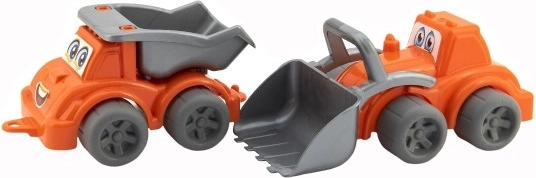 Το σετ περιλαμβάνει φορτωτή με κουτάλα και φορτηγό με καρότσα – ιδανικός συνδυασμός για μικρούς οικοδόμους και τα πρώτα τους κατασκευαστικά έργα.