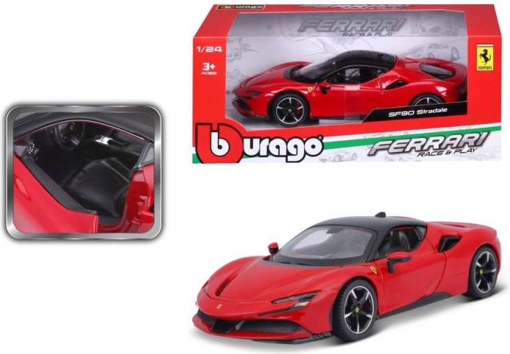 Το μοντέλο αυτοκινήτου Bburago Ferrari SF90 Stradale σε κλίμακα 1:24 είναι ένα εξαιρετικό συμπλήρωμα για όλους τους λάτρεις των αυτοκινήτων και της ποιοτικής κατασκευής. Αυτό το κόκκινο μοντέλο προσφέρει ακρίβεια στις λεπτομέρειες του αυθεντικού οχήματος, καθιστώντας το ιδανικό για συλλέκτες.