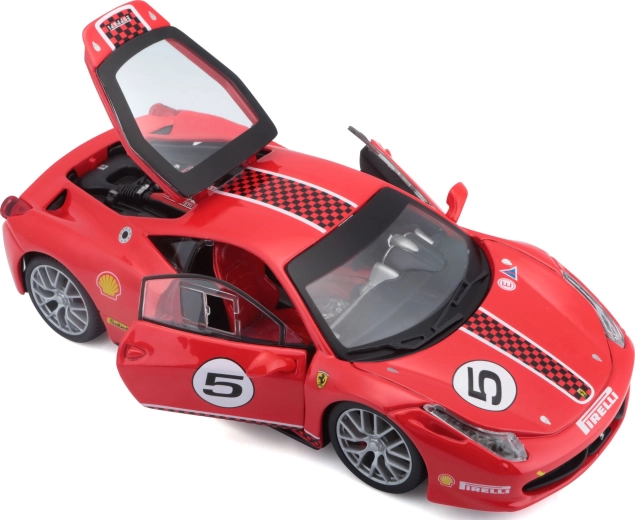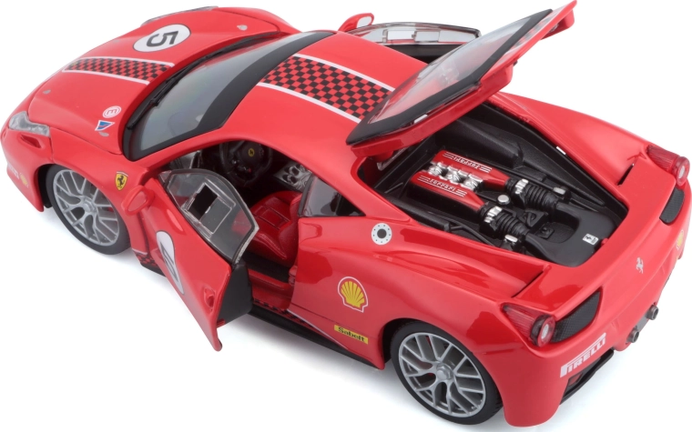 Απολαύστε το λεπτομερώς κατασκευασμένο μεταλλικό μοντέλο Ferrari 458 Challenge σε κλίμακα 1:24, ιδανικό για συλλέκτες και μικρούς λάτρεις των αγώνων. Διαθέτει ανοιγόμενα μέρη, λειτουργική περιστροφή των τροχών μέσω του τιμονιού και ρεαλιστικές αγωνιστικές λεπτομέρειες σε ελκυστικό κόκκινο χρώμα.
