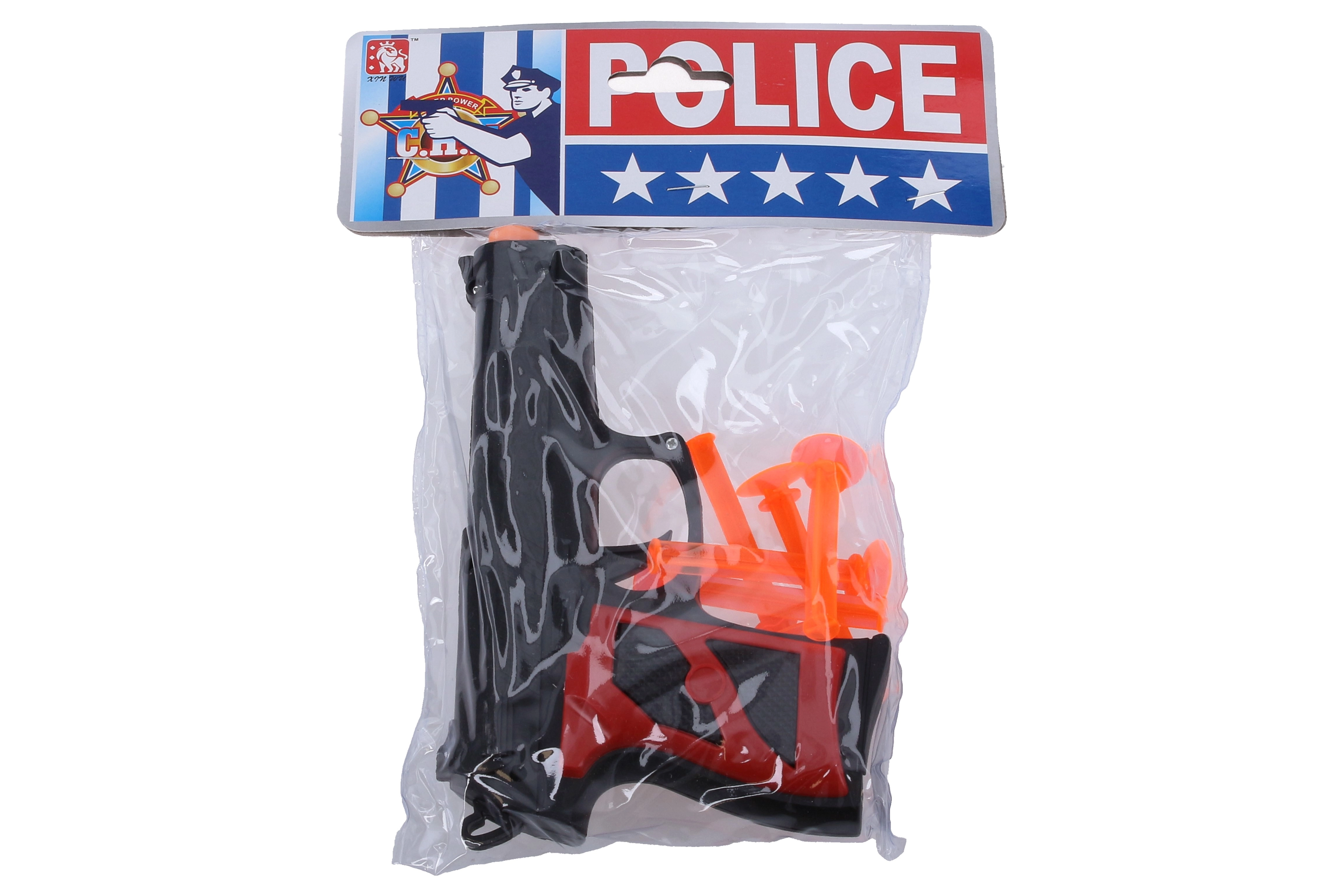 Ελαφρύ και ασφαλές πλαστικό πιστόλι για μικρούς αστυνομικούς. Προσφέρει ασφαλή βελάκια με βεντούζες, εύκολο χειρισμό και ανθεκτική κατασκευή από ποιοτικό, μη τοξικό πλαστικό. Ιδανικό για βολές σε στόχο και σε λείες επιφάνειες και για την ανάπτυξη της δεξιοτεχνίας των παιδιών.