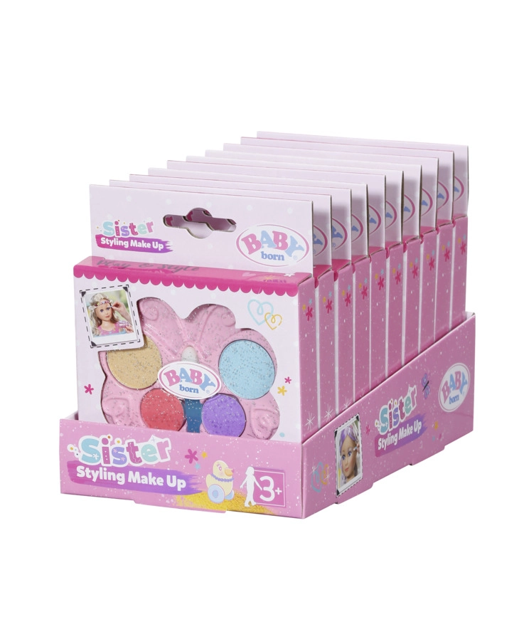 Το σετ παιχνιδιού μακιγιάζ BABY born Αδελφή φέρνει ακόμη περισσότερα χρώματα για εντυπωσιακά στιλ. Το πολύχρωμο μακιγιάζ σε παλέτα σχήματος πεταλούδας μπορεί να χρησιμοποιηθεί πλήρως με τον απλικατέρ για τη δημιουργία μακιγιάζ. Μετά το τέλος του παιχνιδιού, τα καλλυντικά αφαιρούνται εύκολα με ένα υγρό πανάκι, γεγονός που το καθιστά κατάλληλο τόσο για κούκλες όσο και για παιδική επιδερμίδα.