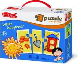 Ανακαλύψτε το έξυπνο σετ Far Far Land, που διδάσκει στα παιδιά με παιγνιώδη τρόπο την αντιστοίχιση και τις σχέσεις μεταξύ αντικειμένων. Κάθε εικόνα χωρίζεται σε τρία κομμάτια και ο στόχος είναι να βρεθεί η σωστή τριάδα που ταιριάζει μεταξύ της. Η συναρμολόγηση καλλιεργεί συγκέντρωση, υπομονή και προσφέρει χαρά με κάθε επιτυχημένη ολοκλήρωση μοτίβου.