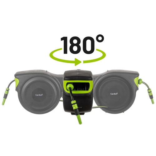 Μέγιστη εμβέλεια και άνεση – το λάστιχο 25 m καλύπτει όλο τον χώρο, η περιστρεφόμενη βάση αποτρέπει το στρίψιμο του λάστιχου και οι 7 λειτουργίες ψεκασμού επιτρέπουν ακριβή προσαρμογή της ροής για πότισμα γκαζόν, παρτεριών και πλύσιμο αυτοκινήτου. Τα ανθεκτικά υλικά PP/PVC/ABS είναι ανθεκτικά στις καιρικές συνθήκες και κατάλληλα για μακροχρόνια χρήση.