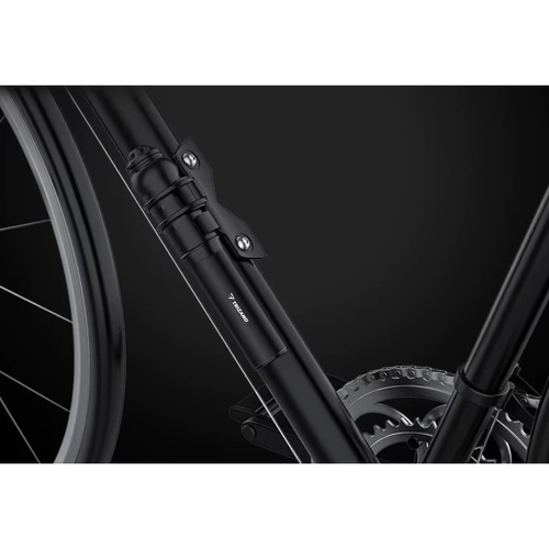 Η συμπαγής χειροκίνητη τρόμπα TRIZAND για ποδήλατο και πατίνι συνδυάζει καθολική βαλβίδα Presta/Schrader, εύκαμπτο σωληνάκι και αλουμινένια, αδιάβροχη κατασκευή. Ζυγίζει μόλις 100 g, έχει μήκος 16 cm και χάρη στη βάση στήριξης στο πλαίσιο την έχετε πάντα διαθέσιμη. Μέγ. πίεση 7 bar (100 PSI) για MTB, δρόμου και trekking ποδήλατα.