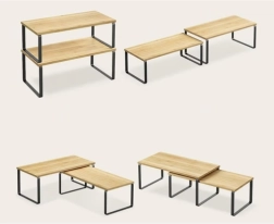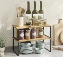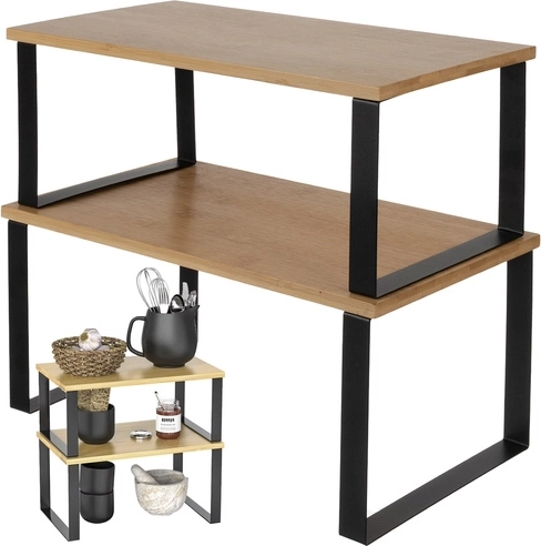 Με αυτό το σετ ραφιών οργανώνετε την κουζίνα σας πρακτικά και με στυλ. Το υλικό μπαμπού εξασφαλίζει σταθερότητα και ανθεκτικότητα, ενώ η μεταλλική στήριξη προσφέρει μεγάλη διάρκεια ζωής και αντοχή.