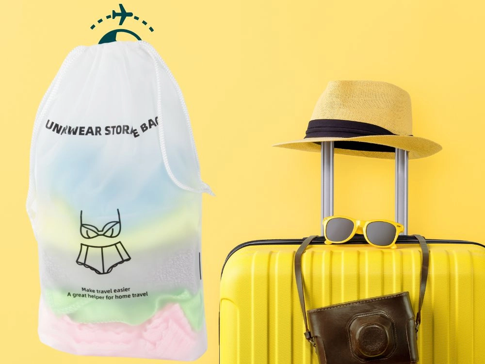 Διατηρήστε την τάξη στα ταξίδια σας με τον πρακτικό οργανωτή εσωρούχων. Χάρη στο αδιάβροχο υλικό το περιεχόμενο παραμένει στεγνό και καθαρό, ενώ η ελαφριά κατασκευή και το κλείσιμο με κορδόνια εξασφαλίζουν εύκολη χρήση. Ιδανικό για βαλίτσα, αεροπλάνο και αθλητική τσάντα.