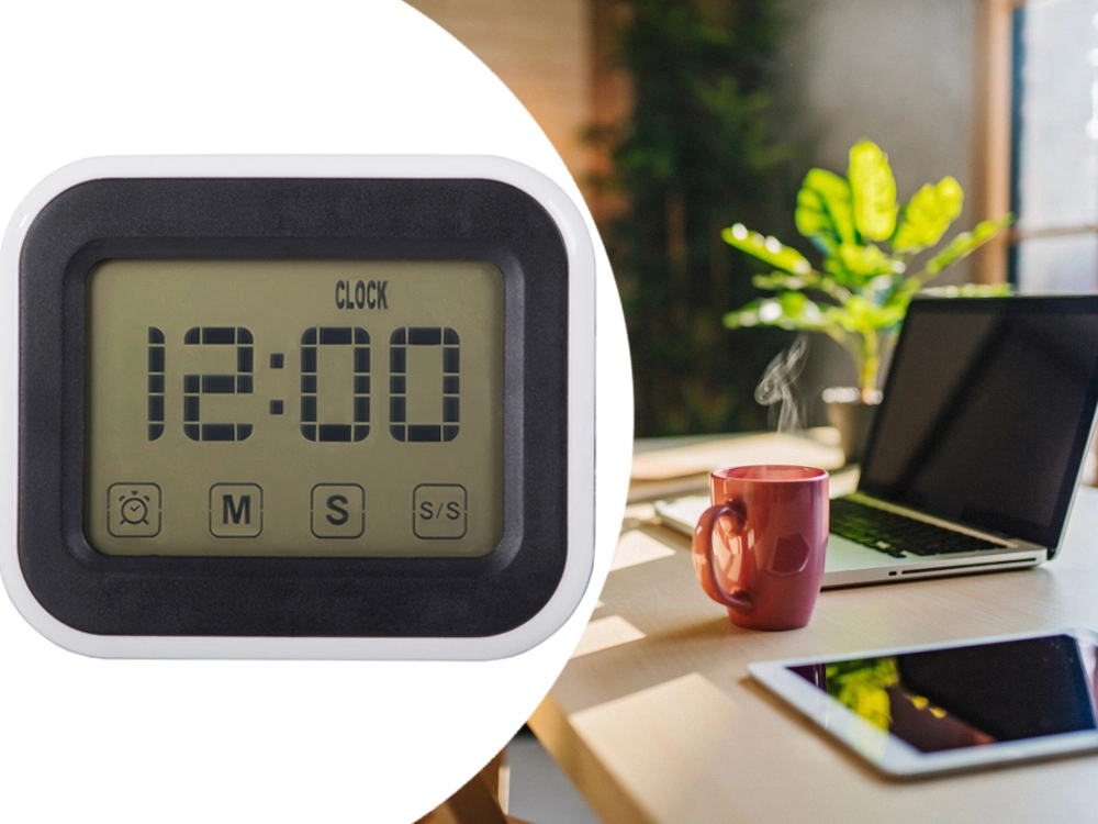 Με τον ισχυρό μαγνήτη το στερεώνετε στο ψυγείο ή σε μεταλλική ντουλάπα, ενώ μπορείτε να το τοποθετήσετε σε τραπέζι με τις αναδιπλούμενες βάσεις. Το ενσωματωμένο ξυπνητήρι και ο χρονοδιακόπτης (αντίστροφη μέτρηση) είναι ιδανικά για μαγείρεμα, μελέτη και προπόνηση.