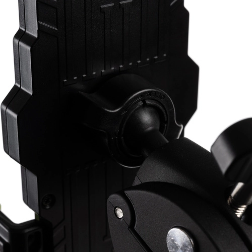 Η βάση είναι εξοπλισμένη με περιστροφή 360° και αντικραδασμικές βάσεις, οι οποίες ελαχιστοποιούν τους κραδασμούς, ώστε η οθόνη του τηλεφώνου να παραμένει πάντα καθαρή και σταθερή, ακόμη και σε λιθόστρωτο ή ορεινό έδαφος.
