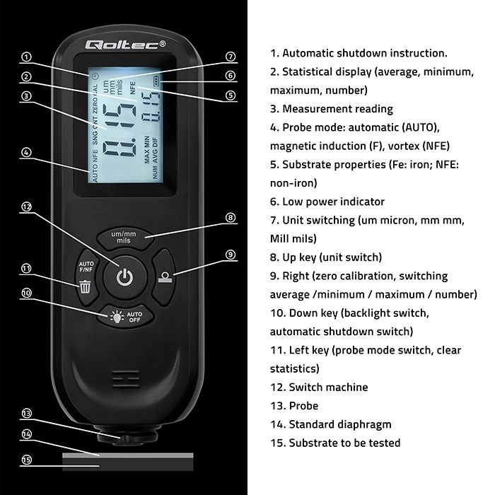 Κατάλληλο για χρήση σε βαφεία, βιομηχανική παραγωγή και κατά την αγορά μεταχειρισμένων οχημάτων για μέτρηση του πάχους προστατευτικών στρώσεων και αξιολόγηση της τεχνικής κατάστασης.