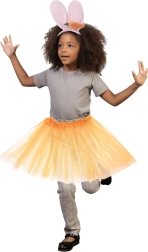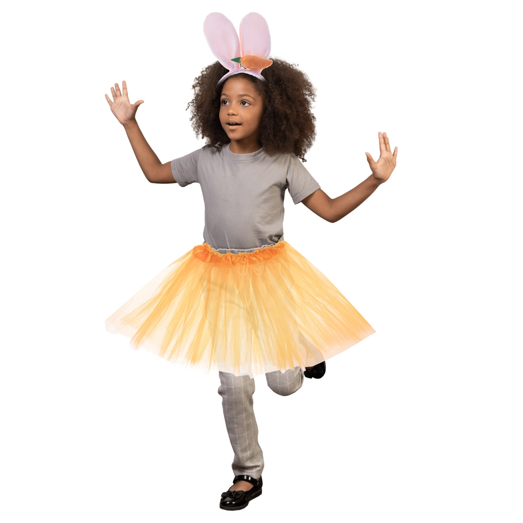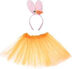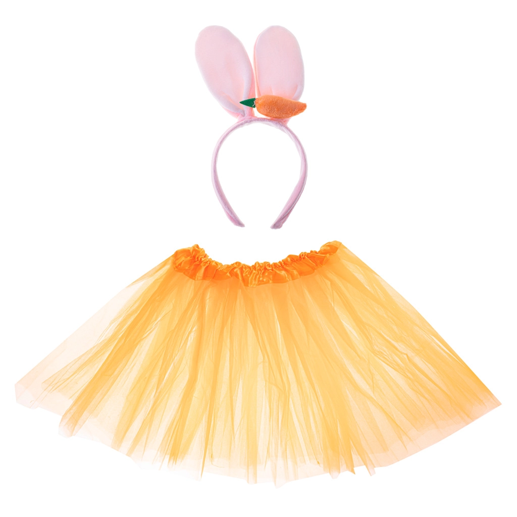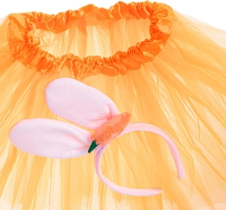 Σας παρουσιάζουμε το ιδανικό κοστούμι κουνελιού, που θα εντυπωσιάσει σε κάθε αποκριάτικο πάρτι, το Halloween ή θεματική γιορτή. Αυτό το σετ συνδυάζει μια κομψή πορτοκαλί φούστα τούτου με στέκα που έχει μαλακά αυτιά κουνελιού και προσαρτημένο καρότο.