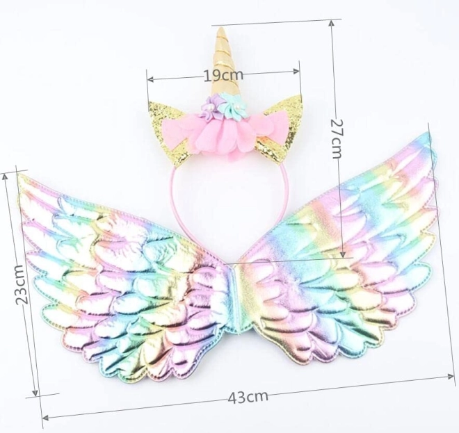 Τα ουράνια φτερά προσαρμόζονται εύκολα χάρη στους ελαστικούς ιμάντες, επιτρέποντας ελεύθερη κίνηση. Η χρωματική τους λάμψη αποπνέει τη μαγεία ενός αληθινού μονόκερου.
