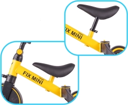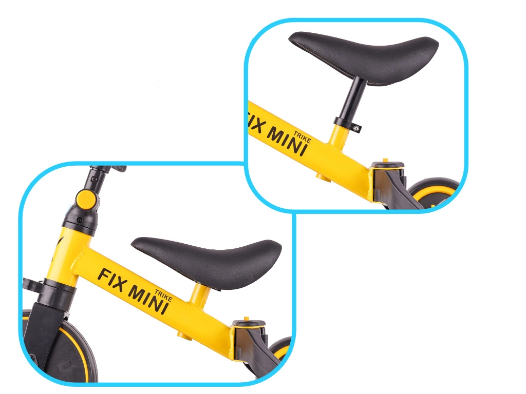 Το Trike Fix Mini μεγαλώνει μαζί με το παιδί: σε λίγες στιγμές το μετατρέπετε από ποδήλατο ισορροπίας με τρεις τροχούς σε ποδοκίνητο τρίκυκλο και στη συνέχεια σε λειτουργία εκπαίδευσης με στενότερη απόσταση πίσω τροχών για εξάσκηση ισορροπίας. Το ρυθμιζόμενο τιμόνι (41–50 cm) και η σέλα (31–38 cm) προσφέρουν εργονομική ρύθμιση για μικρούς αναβάτες από 18 μηνών έως 4 ετών.