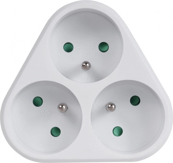 Πρακτική πολλαπλή πρίζα Maclean Energy MCE214 που προσφέρει τρεις υποδοχές με γείωση, ιδανική για συμπαγή χρήση στο σπίτι ή στο γραφείο.