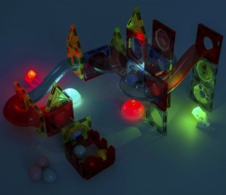 Αυτό το μαγνητικό σετ κατασκευών προσφέρει πλούσια συλλογή κομματιών για τη δημιουργία πρωτότυπων κατασκευών και δυναμικών πιστών μπίλιας. Με τις φωτεινές μπίλιες και τους προβολείς δημιουργείται εντυπωσιακή «λαμπερή» διαδρομή που τραβά την προσοχή των παιδιών και παρατείνει τον χρόνο παιχνιδιού. Οι ισχυροί μαγνήτες εξασφαλίζουν στιβαρές συνδέσεις, ώστε ακόμη και πιο σύνθετες 3D κατασκευές να παραμένουν σταθερές.