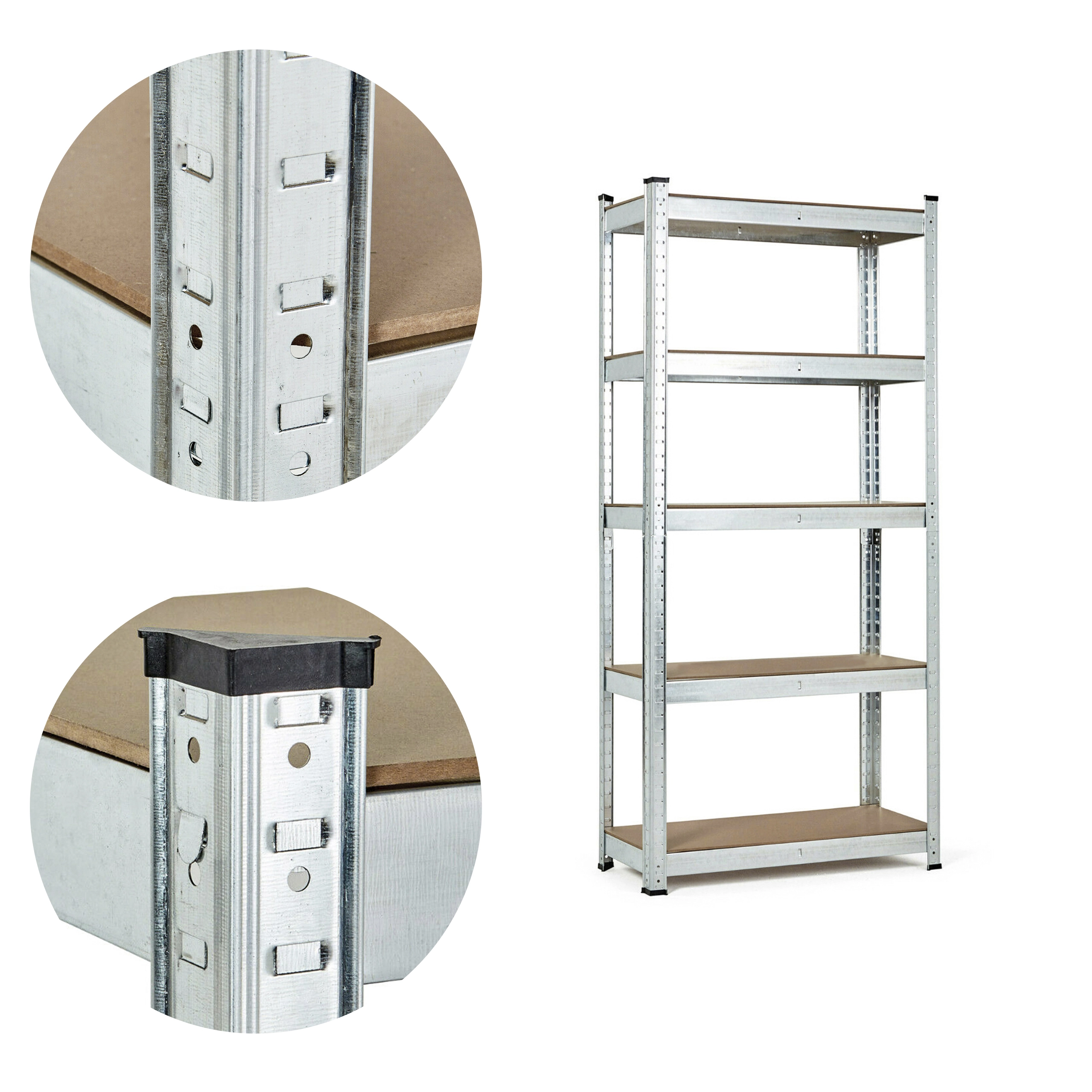 Η κατασκευή από γαλβανισμένο ατσάλι προστατεύει τη ραφιέρα από την υγρασία και τη διάβρωση, καθιστώντας την ιδανική ακόμη και για χώρους με υψηλότερη υγρασία. Το σύστημα συναρμολόγησης τύπου “δοντιών” που εισάγονται σε υποδοχές εξασφαλίζει εύκολη συναρμολόγηση και υψηλή σταθερότητα ακόμη και σε μεγάλο φορτίο. Τα προστατευτικά ποδαράκια αποτρέπουν τη φθορά του δαπέδου.