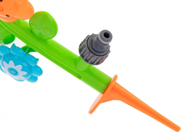 Η συναρμολόγηση είναι εξαιρετικά απλή: καρφώστε την αιχμή στο έδαφος, συνδέστε το κηπουρικό λάστιχο μέσω τυπικού ταχυσυνδέσμου και είστε έτοιμοι. Η ανθεκτική πλαστική κατασκευή αντέχει πολλές σεζόν και τα ζωηρά χρώματα προσκαλούν για παιχνίδι ξανά και ξανά.