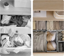 Στιλάτος και πρακτικός οργανωτής RUHHY για συρτάρι, ιδανικός για αποθήκευση ρούχων και αξεσουάρ, είναι ο νέος σας βοηθός για τάξη. Χάρη στη σταθερότητα μετά την ανάπτυξη και την αντοχή στην καθημερινή χρήση αποτελεί ιδανική επιλογή για κάθε σπίτι.