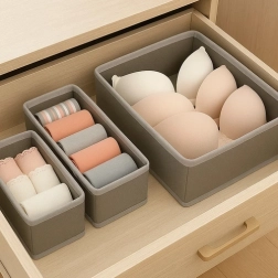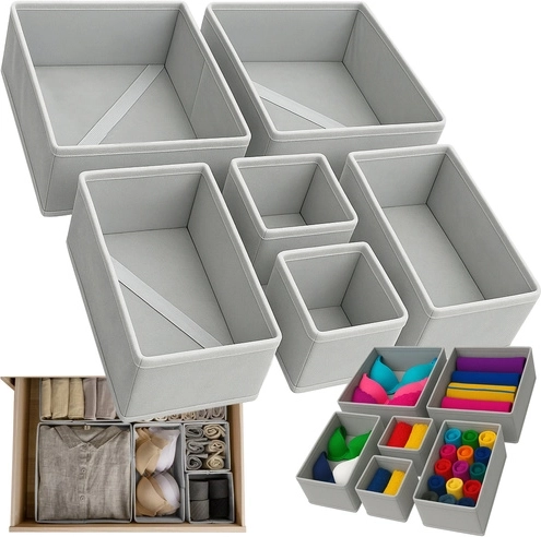 Κρατήστε τα ρούχα και τα αξεσουάρ σας πάντα στη θέση τους με αυτό το πρακτικό σετ οργανωτών. Περιλαμβάνει 6 τεμάχια διαφορετικών μεγεθών που εξασφαλίζουν καθολική χρήση και εύκολο καθάρισμα. Ο κομψός, ανοιχτός γκρι σχεδιασμός προσθέτει φινέτσα και ταιριάζει εύκολα σε οποιαδήποτε ντουλάπα. Κάθε οργανωτής έχει σχεδιαστεί ώστε να είναι σταθερός και ανθεκτικός.