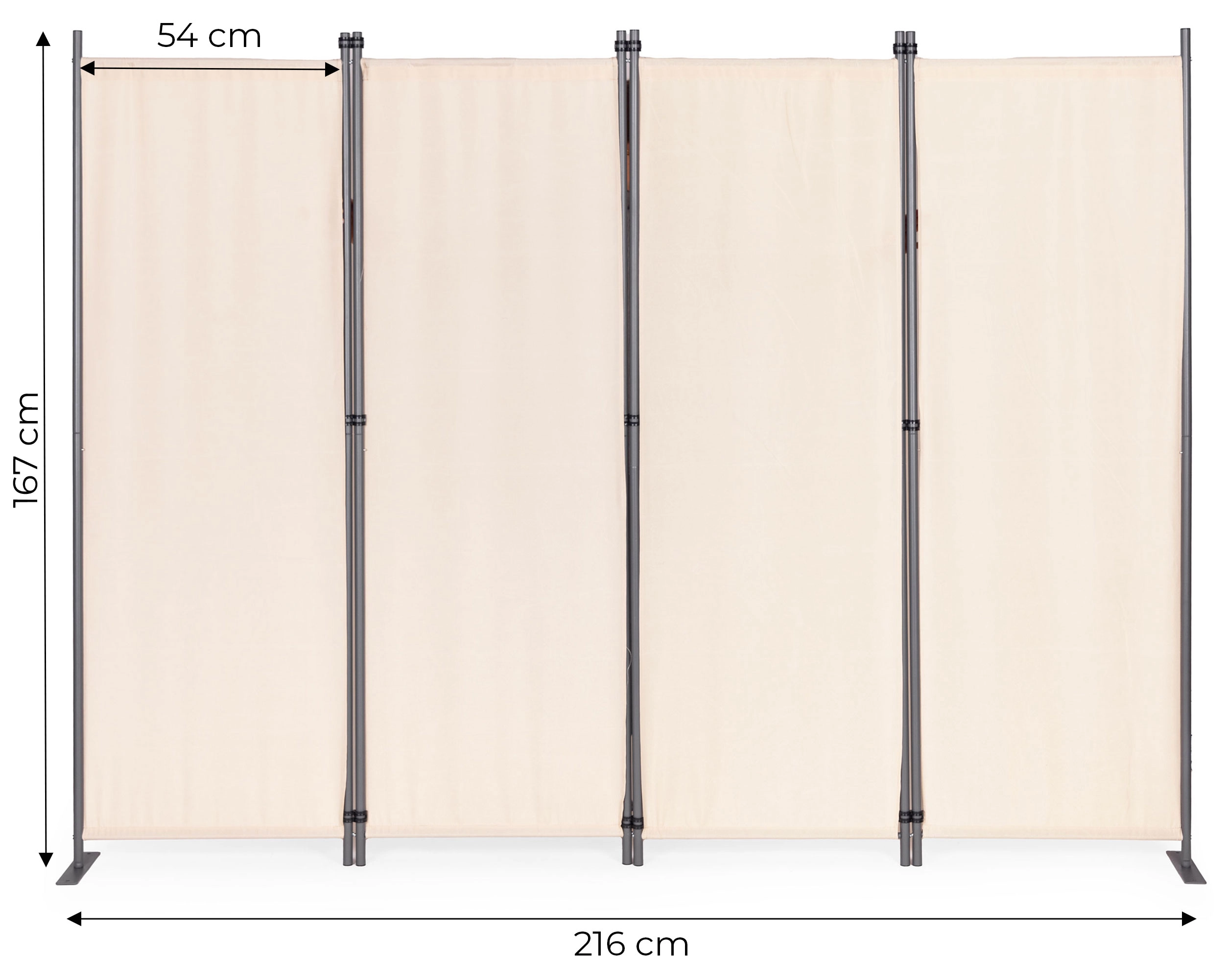 Οι στέρεοι σύνδεσμοι των πάνελ επιτρέπουν εύκολο άπλωμα και δίπλωμα, ενώ η σταθερή μεταλλική βάση αποτρέπει την ανατροπή. Τα παρεχόμενα εξαρτήματα στερέωσης εξασφαλίζουν πρόσθετη σταθερότητα κατά τη διάρκεια ανεμώδων ημερών.
