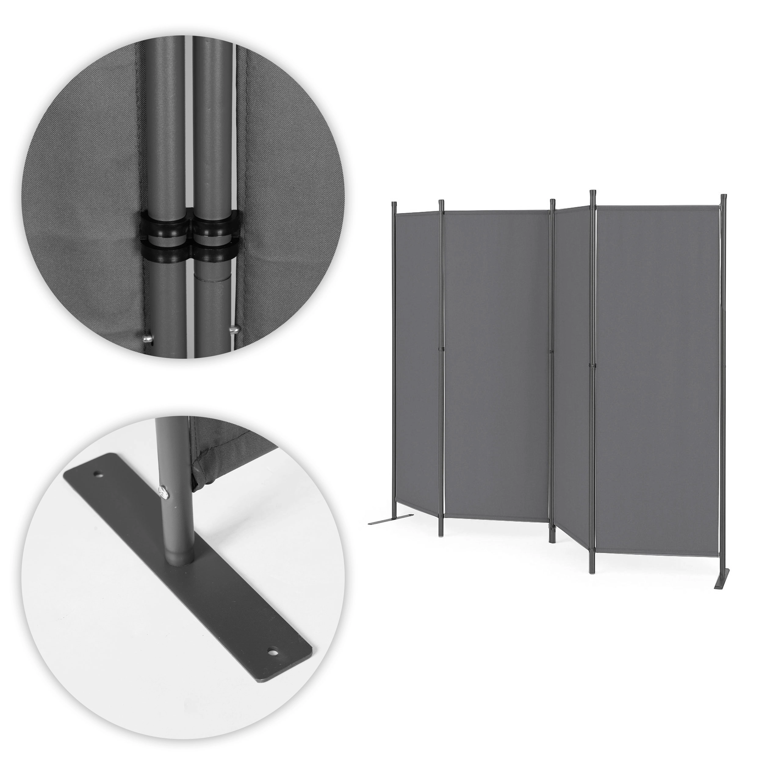 Οι ανθεκτικοί συνδετήρες πάνελ διευκολύνουν το δίπλωμα και το άνοιγμα του διαχωριστικού, απλοποιώντας σημαντικά την καθημερινή χρήση. Η σταθερή μεταλλική βάση με πρακτικές οπές για αγκύρωση προσφέρει εξαιρετική στήριξη σε ολόκληρη την κατασκευή, αποτρέποντας την ανατροπή ακόμη και σε ανώμαλο έδαφος.