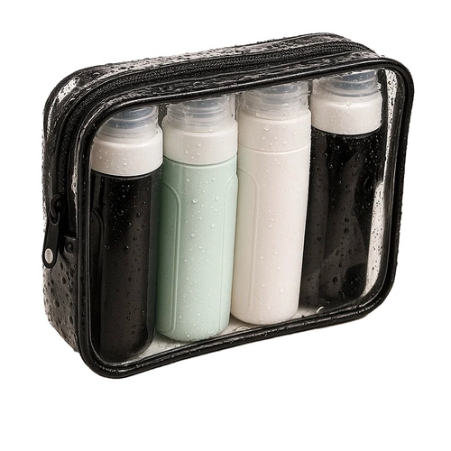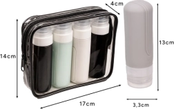 Σας παρουσιάζουμε το πρακτικό ταξιδιωτικό σετ καλλυντικών της Trizand, ιδανικό για όλες τις ταξιδιωτικές σας ανάγκες. Πρόκειται για σετ με τέσσερα σιλικονούχα μπουκαλάκια και διάφανη αδιάβροχη τσάντα, που πληροί τα πρότυπα TSA/IATA για μεταφορά υγρών στη χειραποσκευή. Τέλος στο άγχος για χυμένο σαμπουάν στη βαλίτσα!